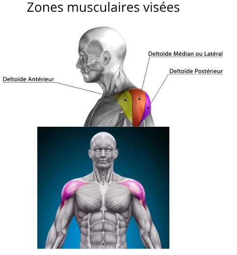 - 4 zones d’entraînement ciblées (poitrine, épaules, dos, triceps)
